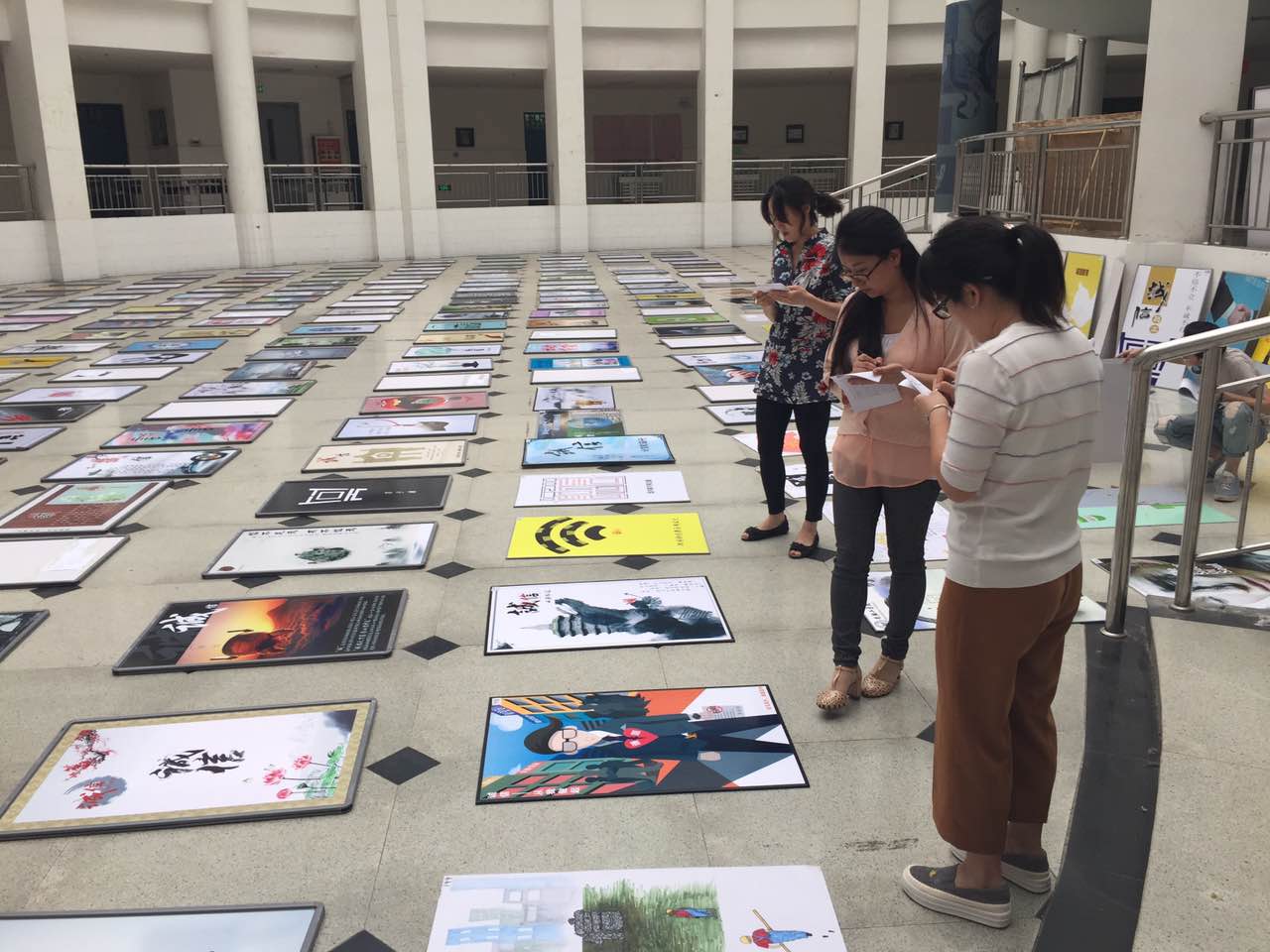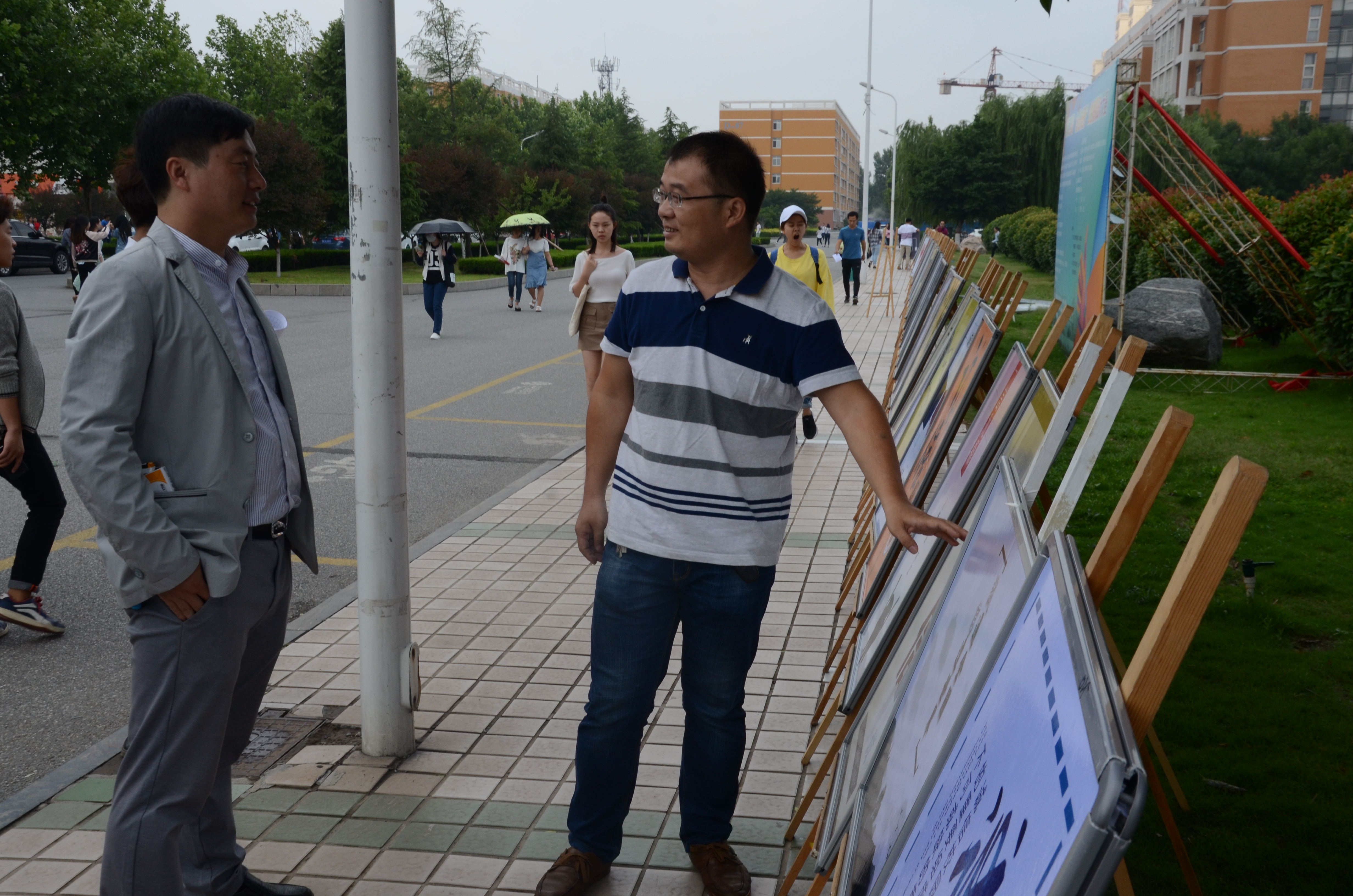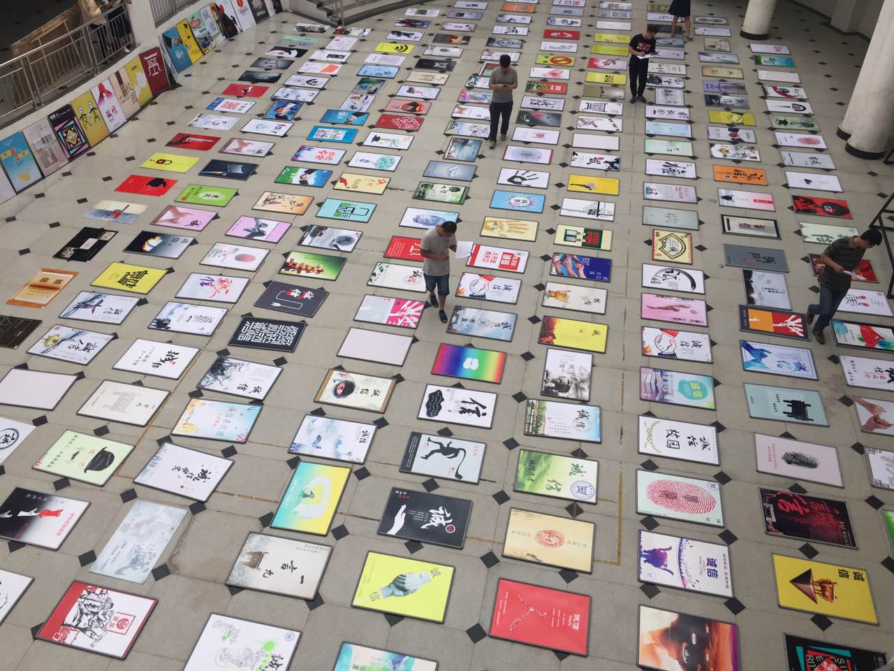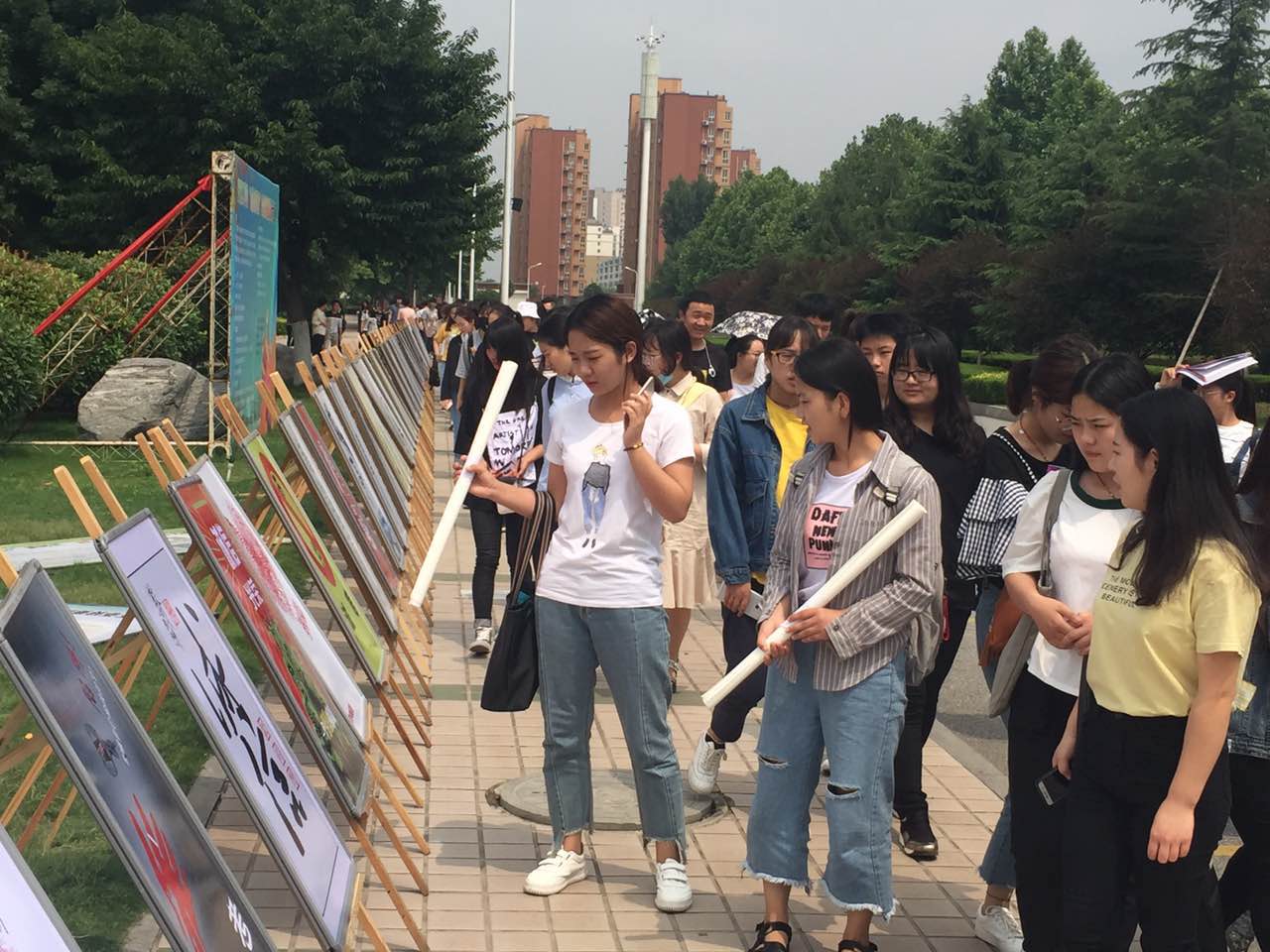 虽然天气炎热,但展览现场还是聚集了大量的同学,大家沿着至善湖,一边欣赏参赛者的作品,一遍兴致勃勃的和同伴们进行着点评。参展的海报和参观的同学们共同成为了校园里一道靓丽的风景线。