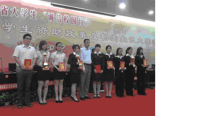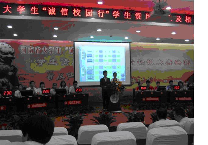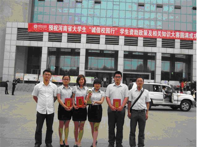 5月17日~18日,由国家开发银行股份有限公司河南省分行、河南省教育厅、中国人民银行郑州中心支行主办的“诚信校园行”学生资助政策及相关知识大赛总决赛在新乡医学院举行。我校经过激烈的五轮淘汰赛,最终获得总决赛金奖。