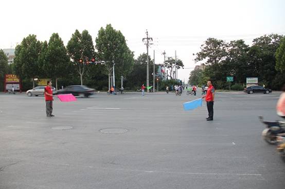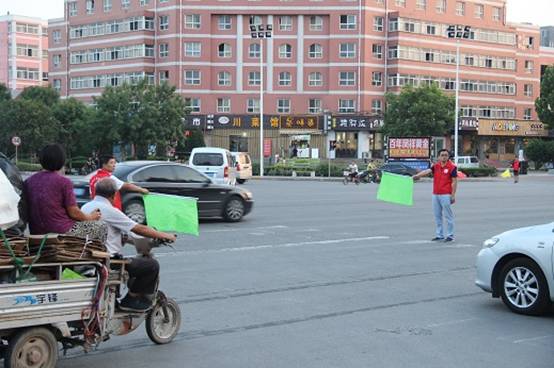 在学校附近的黄河大道与峨眉大街交叉路口,我校学团工会党支部党员身着红色志愿者马甲,手持彩色指挥旗,在路口两侧配合交通指示灯,引导行人安全过马路。这个路口由于地处我校和五中两个学校门口,附近又有数个社区,人和非机动车流量较大,又因为黄河大道是我市的重要交通要道,机动车辆较多,行人的交通安全隐患很大。此次活动,为广大路人的安全出行提供了保障,赢得了很多路人的赞誉。