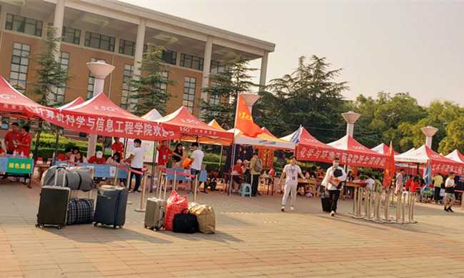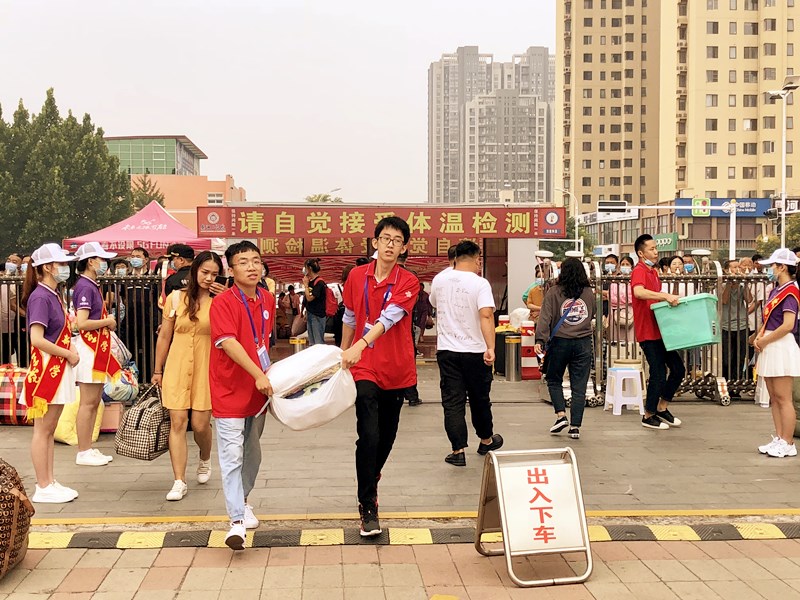 报到过程中,本着“安全、文明、有序、简便、高效”的原则,小20们经过更换口罩、行李消杀、体温检测、查验健康码后持录取通知书进入校园各学院迎新点报到。校园中鲜艳醒目的留影墙和随处可见的暖心条幅迎来了来自祖国各地的莘莘学子。为了更好的服务学生,学校在“迎新”现场设立有新生报到咨询、绿色通道、医疗等服务点,现场工作人员服务热情、有问必答。新生报到各项工作安全有序,进展顺利。