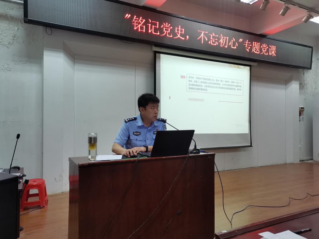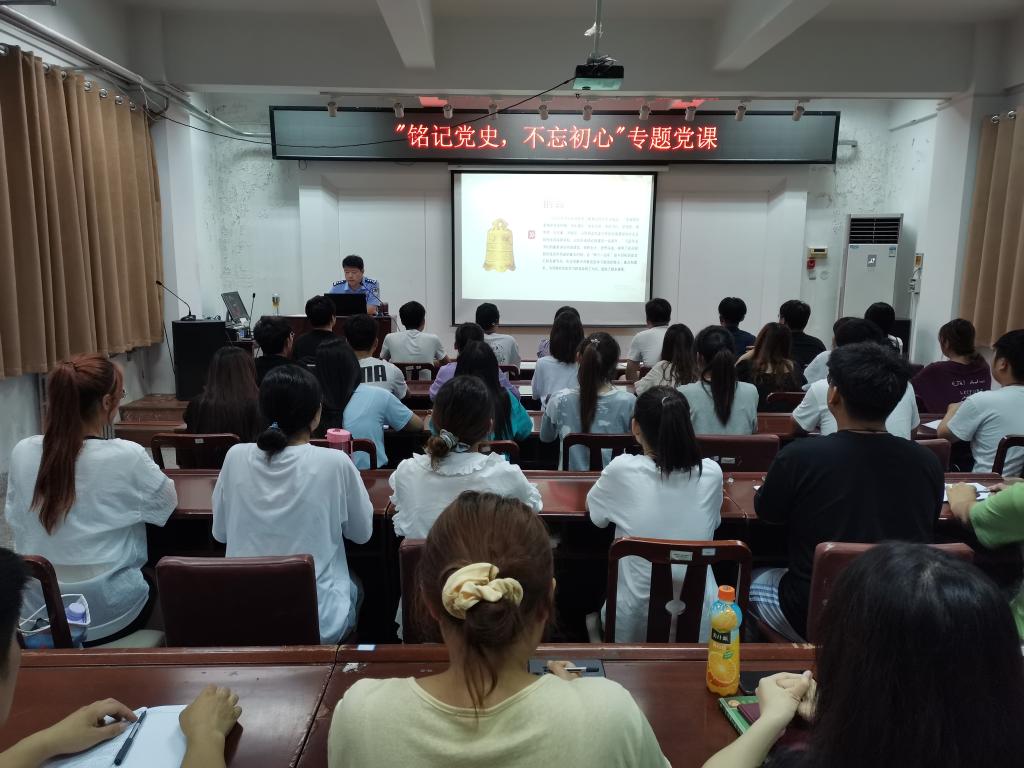 6月24日学生工作处、保卫处共同邀请安阳市公安局高新分局党委书记、政委徐海峰同志在B02-316学团会议室为学工助理团队讲授《铭记党史不忘初心》专题党课。