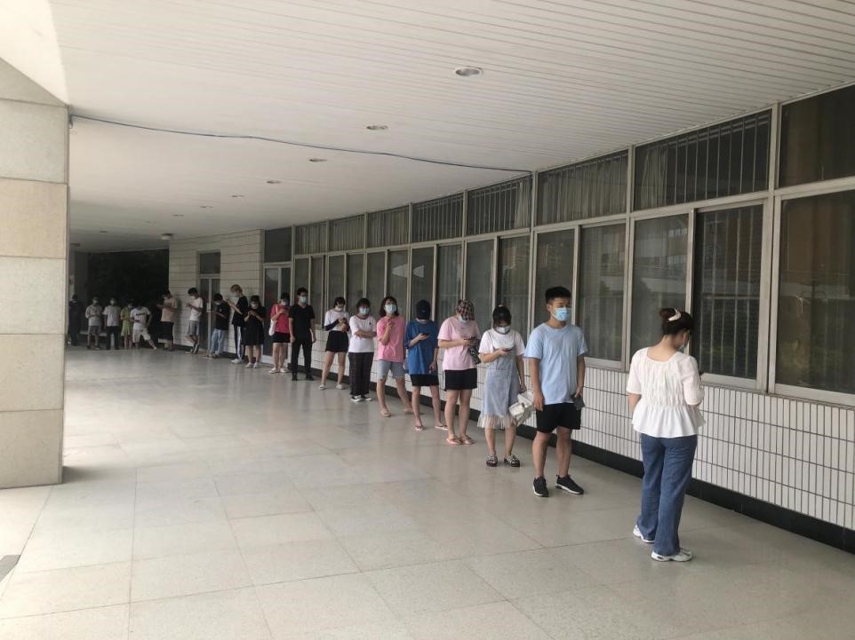 排队等候核酸检测的学生