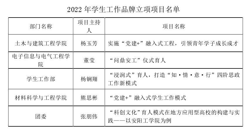 会上,评审团在听取汇报、查阅申报材料的基础上进行评审打分和综合排名。经过全校公示,学生工作部最终确定5个项目为我校2022年度学生工作品牌立项项目。
