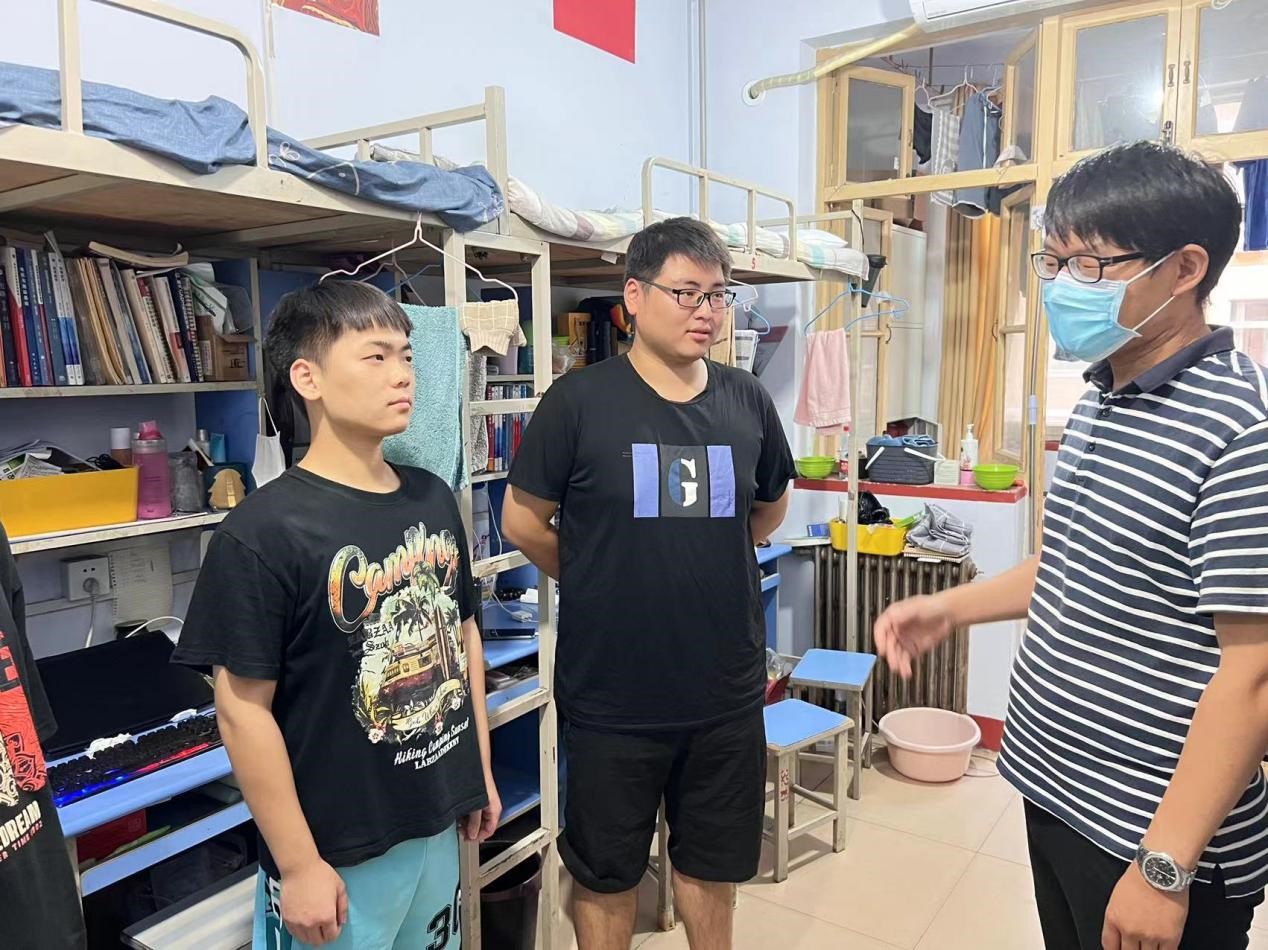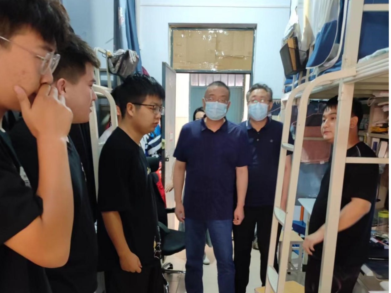 封控期间,各学院领导班子多次走访学生宿舍,为学生送去关心和慰问。在走访中,他们走进学生宿舍,查看学生住宿环境和卫生状况,了解学生在封校后宿舍生活的实际困难,听取同学们对于封校管理期间反馈的问题和建议。同时对学生提出殷切希望,希望同学们理解和配合学校的各项疫情防控要求,共克时艰,坚决打赢校园疫情防控阻击战。同时,鼓励同学们保持积极的心理状态和学习状态,上好线上课程,规范生活作息,提高身体素质。