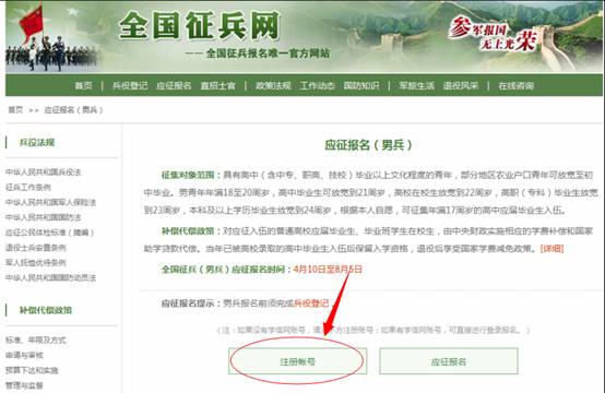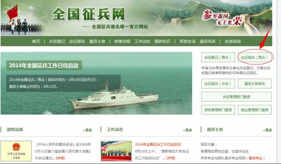 1、登陆http://www.gfbzb.gov.cn/,点击应征报名。