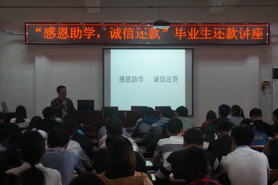 这次活动,加深了学生对国家助学贷款的的认识了解,让同学们熟悉并掌握了助学贷款的还款方式、还款流程,明确了各注意事项,另外也使同学们意识到诚信对个人学习、生活、工作的重要性。