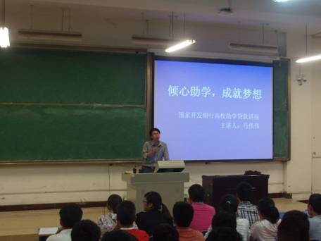 随后,马伟伟老师作了精彩的发言,详细地讲解了贷款、个人贷款、国家助学贷款、如何申请贷款以及支付宝的使用方法。教室里座无虚席,气氛热烈,同学们专心地听取报告,认真地做了笔记。通过马老师的精彩讲解,大家了解了国家助学贷款的动态,熟悉了国家助学贷款的申请流程和还款方式等知识。
