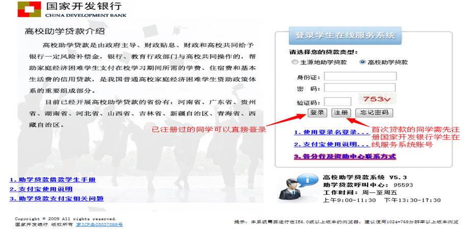 4.进入系统登陆或注册页面:首次贷款的学生请先注册,已注册过的可直接登陆