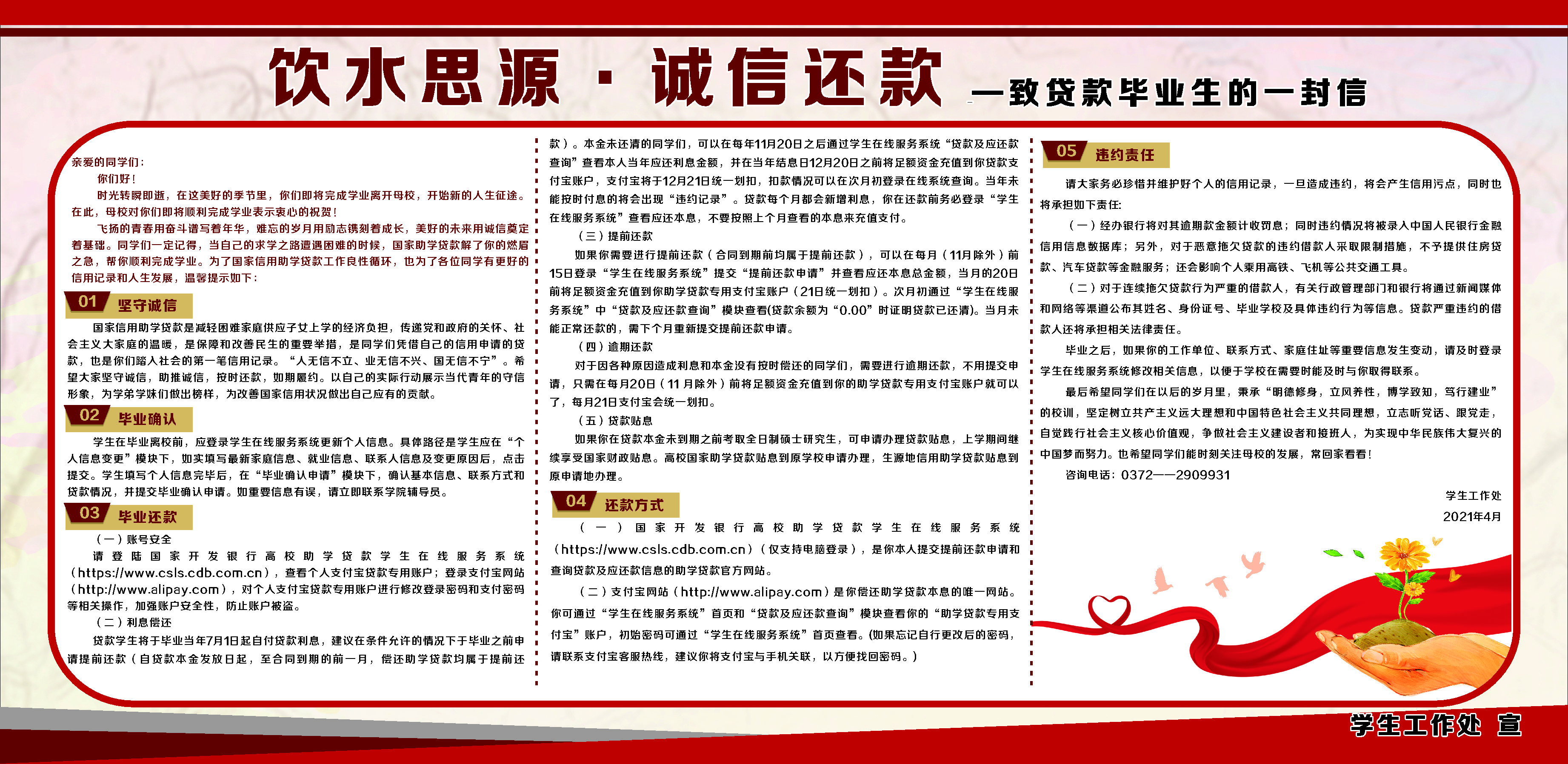 饮水思源 诚信还款 至贷款毕业生的一封信